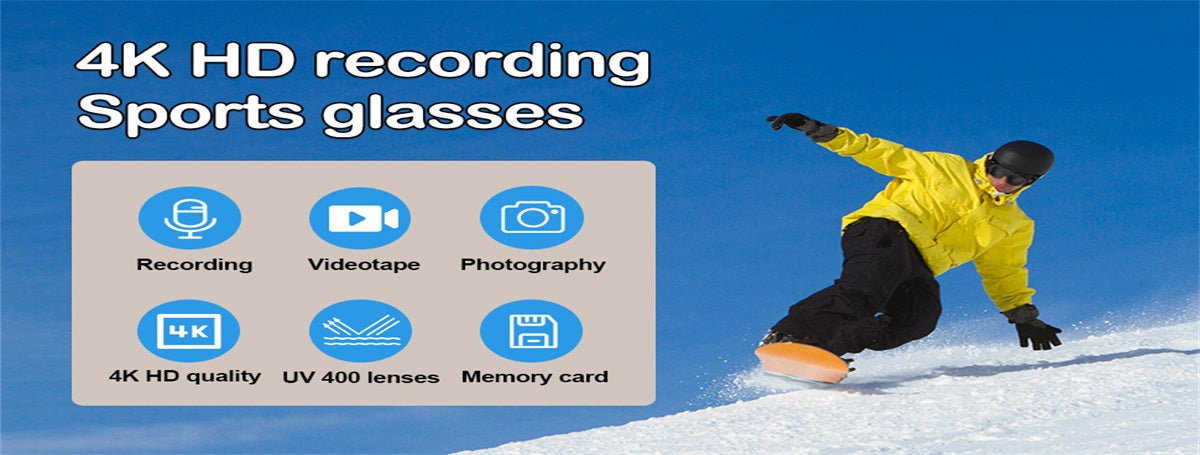 Full HD 3840x2160P 30fps Sporting Video Sunglasses, embracing design, anti-skid foot cover, elastic material, anti-collision and anti fall, keep your hands free.Gives you better shooting gear for cycling tours record our wonderful moments.