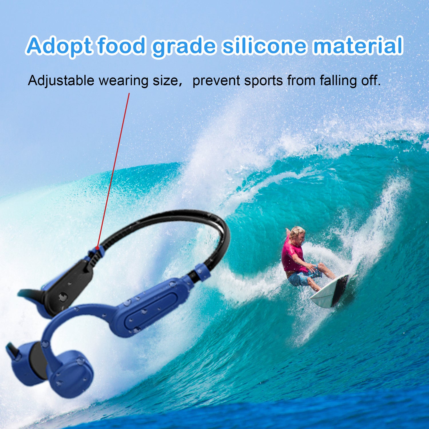 - 【IPX8 Waterproof】: IPX8 Waterproof Bone Conduction Headphones is designed for sports like swimming, diving water , running, fitness, outdoor sports. Note: Bluetooth does NOT work underwater, please switch to MP3 mode and put on waterproof ear caps before swimming.