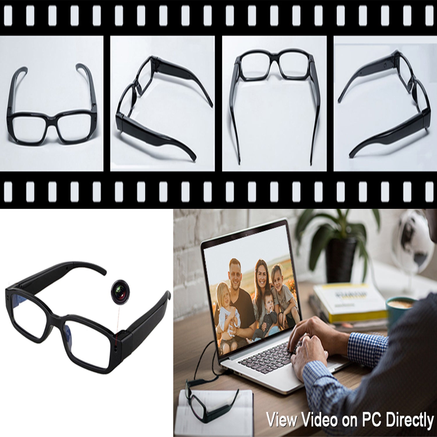 - Camera Eyeglasses features video recording and picture taking. Wear it to record what you see and it is also a cool decoration.