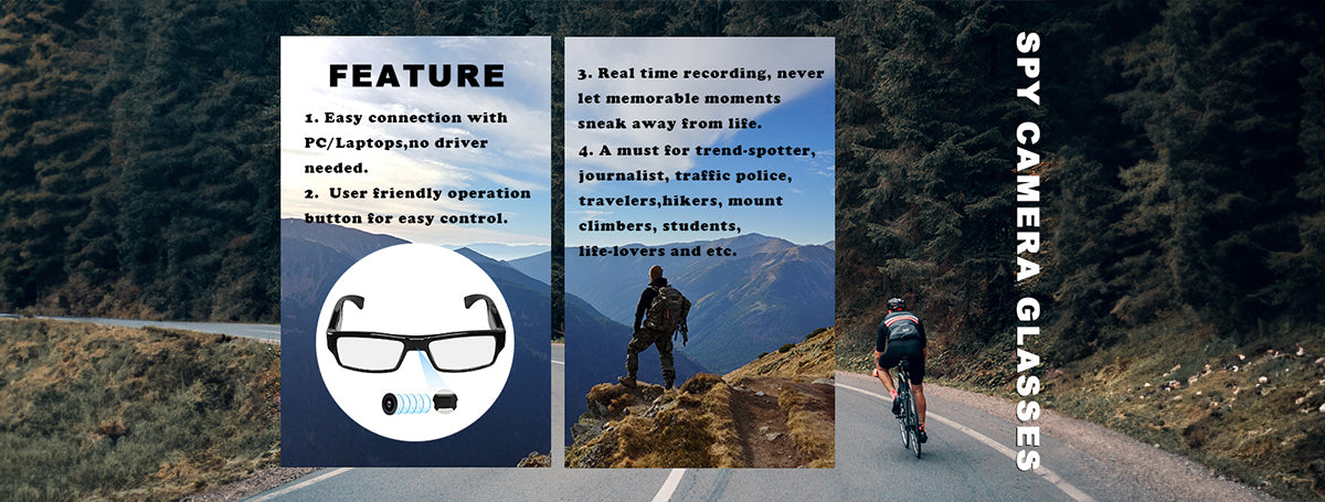 - Hidden Camera Glasses features video recording and picture taking. Wear it to record what you see and it is also a cool decoration.