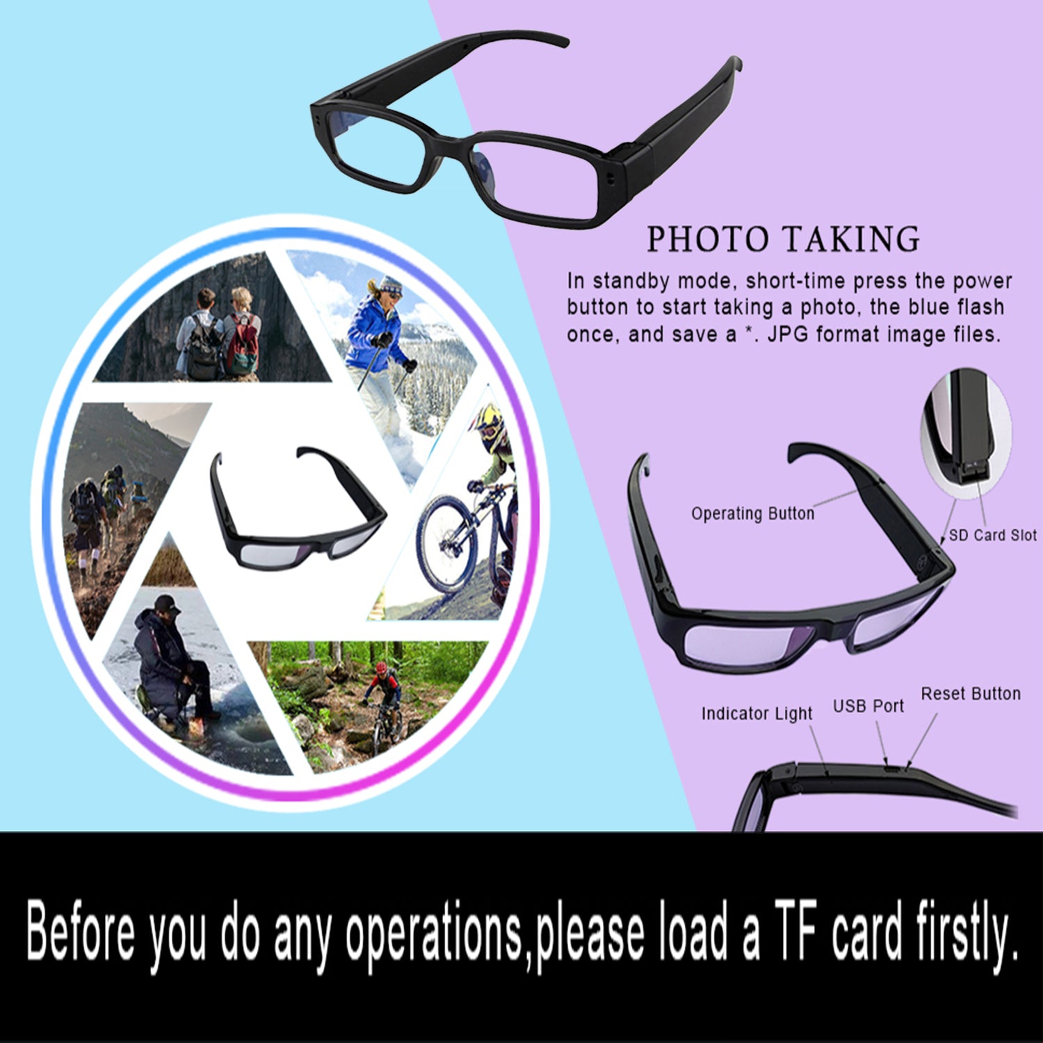 Spy Camera Glasses with Video Support Up to 32GB TF Card 1080P Video Camera Glasses Portable Motion Only Video Recorder